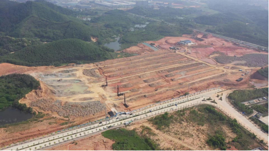 翔海光电产业基地项目位于云浮新区省市共建信创园内,由广东翔海光电科技有限公司投资建设,计划总投资22亿元,规划用地面积约300亩,主要建设年产2000万套显示模组的生产基地,共15条生产线,生产35至86寸等多种型号的显示屏,产品以出口为主。项目计划于2023年投产,预计年产值达60亿元,年纳税9000万元,可提供1500个就业岗位。项目于2022年5月16日完成三通一平移交给施工单位,目前临时水电、施工排水排污、办公区域筹建、施工道规划等前期工作已完成,开始进入基桩施工阶段。
