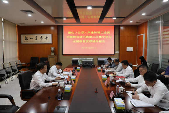 10月12日,佛山(云浮)产业转移工业园(以下简称园区)开展学习贯彻习近平新时代中国特色社会主义思想主题教育专题党课。园区党工委书记李日平围绕“践行新思想 圆梦新征程,凝心聚力推动园区高质量发展”主题,为园区领导班子成员、各单位(部门)主要负责人讲了一堂主题教育专题党课。