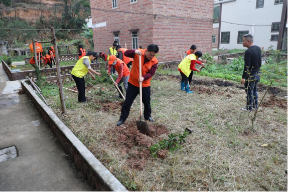 为全面贯彻党的二十大精神,践行习近平生态文明思想,推进现代化建设,深入实施“百县千镇万村高质量发展工程”和绿美广东生态建设,2月4日下午,佛山(云浮)产业转移工业园机关党支部书记袁勇军率队到腰古镇芙蓉村委长岭村开展党建引领乡村绿化工作主题党日活动。机关党支部党员、腰古镇政府驻村干部、芙蓉村两委干部等20余人参加,以实际行动践行绿水青山就是金山银山理念。