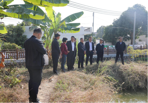 座谈会结束后,调研组一行围绕下白村进行实地走访,了解示范村建设工作推进情况。在走访现场,调研组仔细检查下白村村内池塘和排水渠,要求定期做好清理工作。随后调研组通过走访入户的方式倾听村民对打造示范村的意见建议。