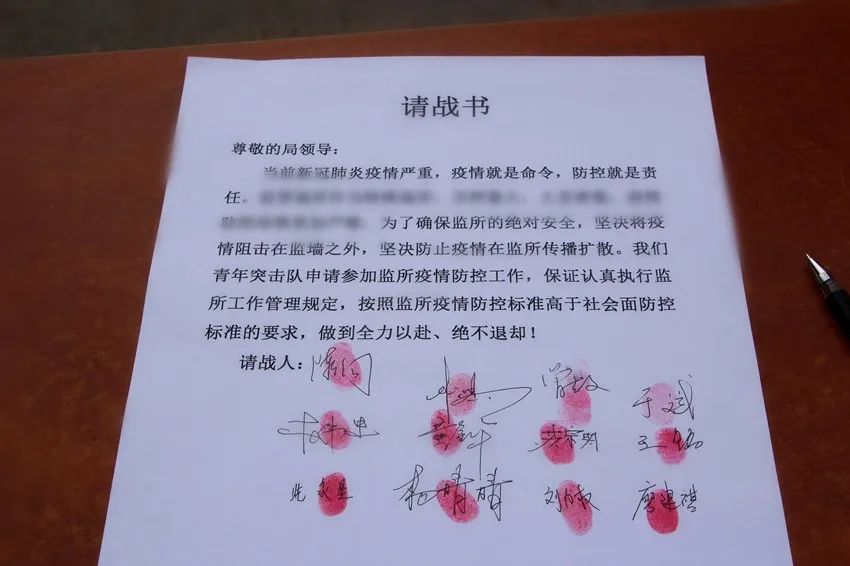 铮铮誓言写忠诚,紧要关头亮本色。2月28日上午,在市看守所办公大楼前,由市局监管支队政委陈炯带头成立了临时党支部,举行了一场疫情中的特殊入党宣誓仪式,重温了入党誓词,凝聚了担当、奉献的精气神。大家一致表示与全体监所工作人员共同站在疫情防控第一线,齐心协力,采取一切措施、克服一切困难,严防死守,以最高标准、最严措施,清除一切感染的可能,防范一切传染风险,坚决将疫情阻击在监墙之外。一封请战书,十二个坚如磐石的红指印和刚劲有力的签名,写满了盼望对抗疫情、一战到底的决心。
