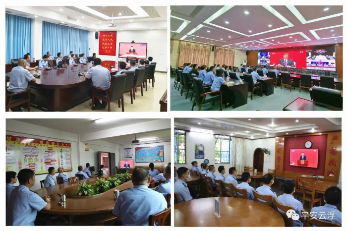 云浮各级公安机关积极发动组织公安民警通过电视、广播、网络客户端和新媒体平台等多形式收听收看大会直播,认真聆听习近平总书记重要讲话。