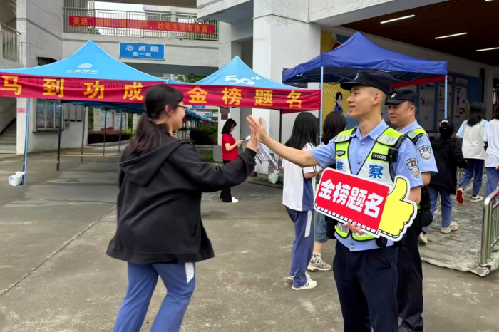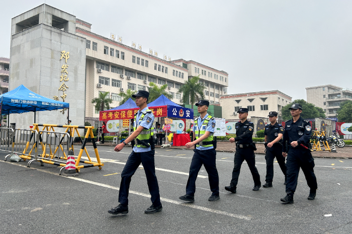 高考期间,全市公安机关共投入6000多人次警力做好“点、线、面”全方位高考安保服务工作,在13个考点均设置“高考安保便民服务岗”,每日派出足够警力提前到岗、驻站值守,现场受理、快速处置涉考警情求助,随时准备应对突发状况。多警种采取定点守护和流动巡逻相结合的方式,重点加强考点及周边巡逻密度和频次,提高见警率和管事率,提升广大师生的安全感,并及时为遭遇突发状况的考生提供应急援助服务。