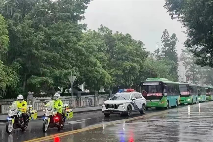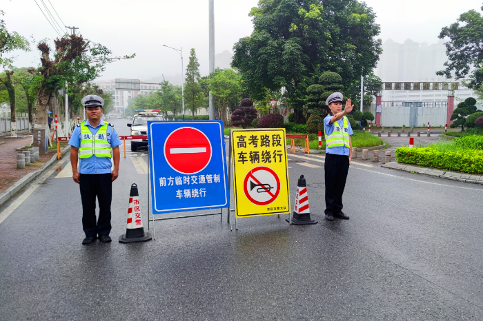 交警部门提前对可能存在隐患的考点门前道路及周边道路加强排查和整改;备考期间,交警部门严查机动车乱鸣喇叭、飙车等违法行为10起;提前发布道路交通管制信息和天气预报及防范措施等温馨提醒信息23万余条。考试期间,对进入考点周边路段实施临时交通管制33处,引导公众选择合理绕行路线。共出动交通警力586人、铁骑队97辆、无人机17台开展巡逻防控,全力以赴为高考保驾护航。还设立护畅小分队,为送考大巴提供警车开道护送服务。