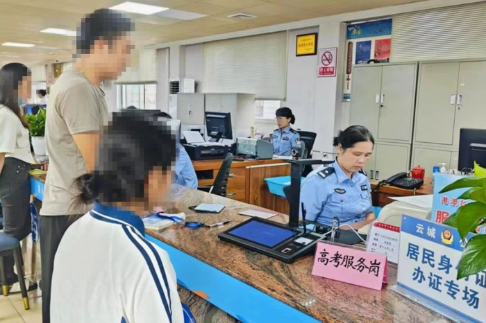 始终坚持“以考生为本”,急考生之所急,用心用情用力服务好考生,一路“警”相随,一路保驾护航。云浮公安开通涉考110报警台等“快速通道”,快接快处涉考报警求助;开展办证专场和“办证进校园”等活动并通“绿色通道”,对考生申请加急办理居民身份证落实优先办理。4月以来,共为考生办理690张身份证。高考期间,有考生遇到遗失身份证、准考证,行动不便,错过大巴等突发情况,公安机关及时为20多名考生提供暖心应急服务,保障考生顺利入场考试。