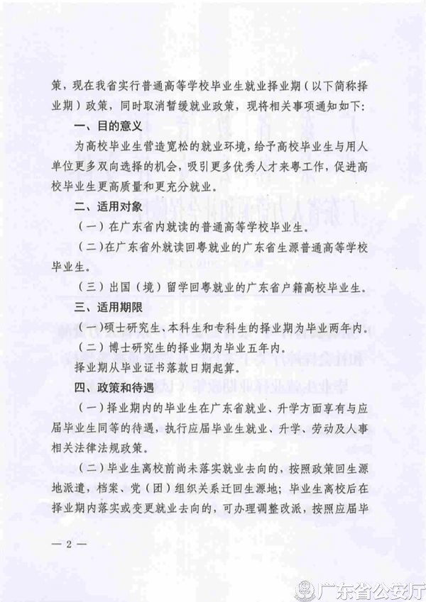 广东省教育厅 广东省公安厅 广东省人力资源和社会保障厅关于实行广东省普通高等学校毕业生就业择业期政策(试行)的通知