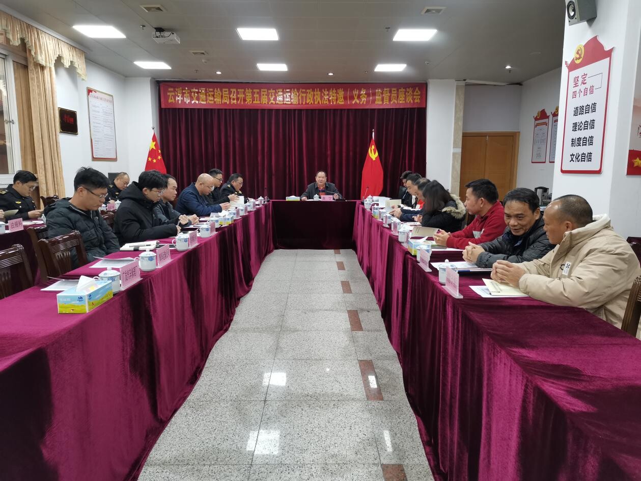为进一步加强与特邀监督员的沟通联络,更好地接受监督、改进工作,12月21日上午,云浮市交通运输局在局一楼培训厅召开第五届交通行政执法特邀(义务)监督员座谈会议,通报2023年全市交通综合行政执法工作情况,听取特邀监督员意见建议。会议由云浮市交通运输局二级调研员莫宁主持,市交通运输局有关科室负责人、来自社会各行各业的特邀(义务)监督员参加会议。
