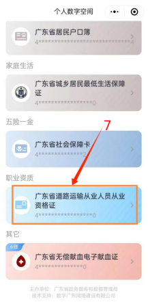 5、点击查看“广东省道路运输从业人员从业资格证”电子证照。