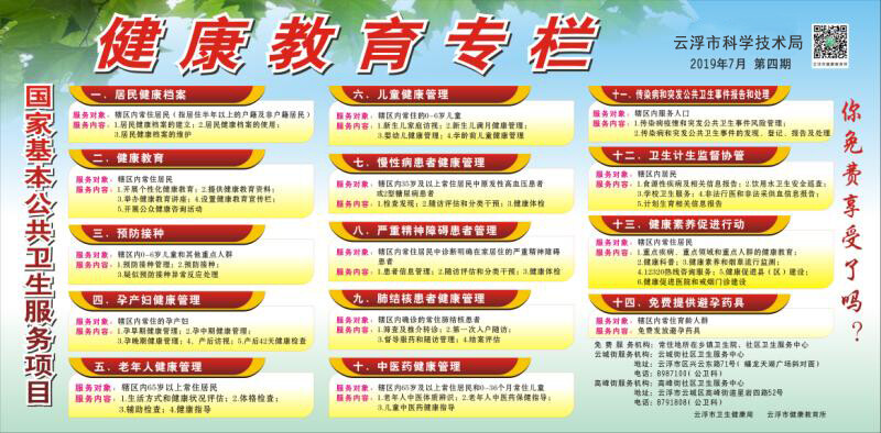 服务内容:1.开展个性化健康教育;2.提供健康教育资料;3.举办健康教育讲座;4.设置健康教育宣传栏;5.开展公众健康咨询活动