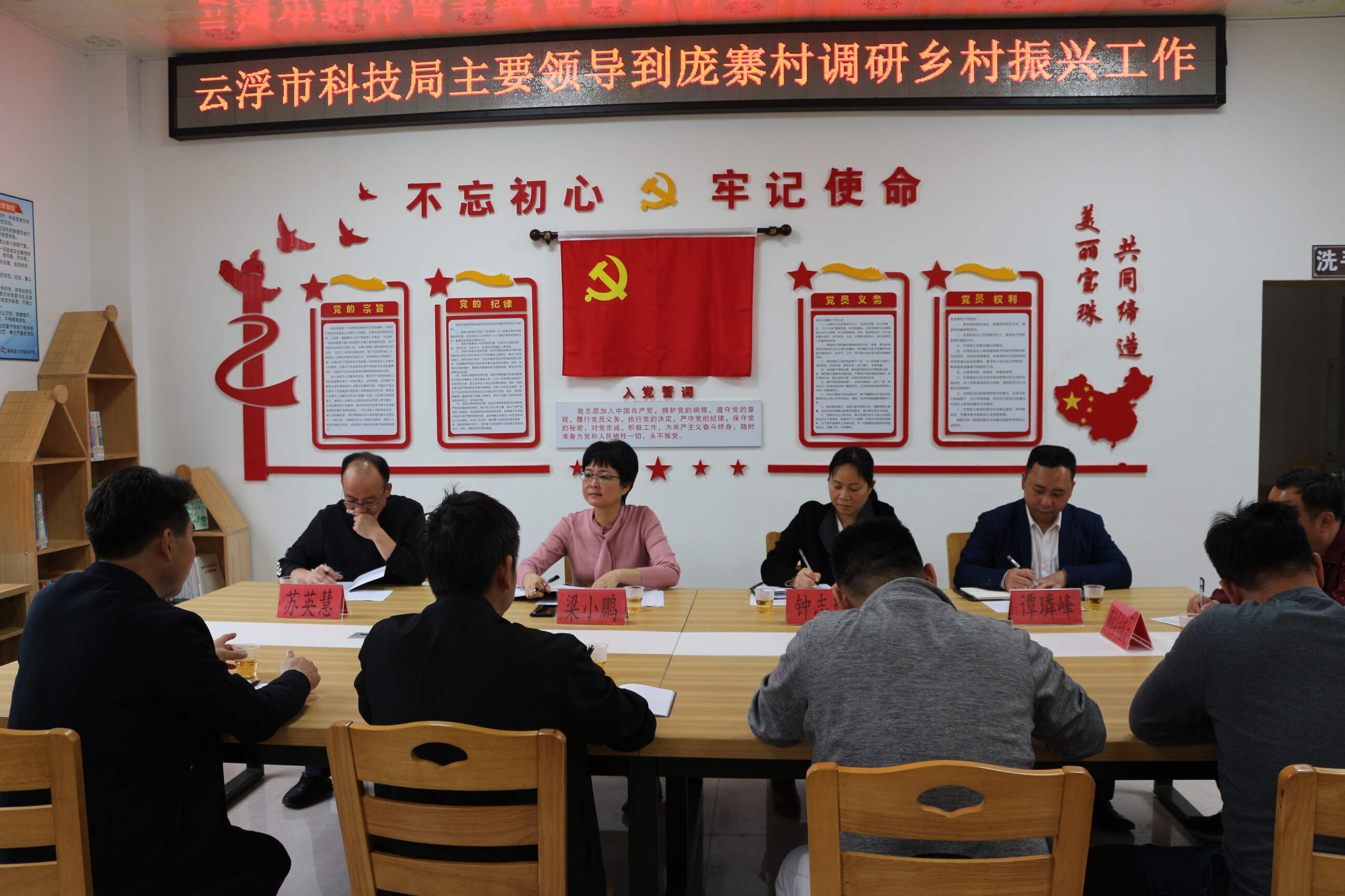 调研组一行在宝珠镇庞寨村召开座谈会,县科技局、宝珠镇委、庞寨村委、驻镇帮镇扶村工作队分别围绕当地特色产业的科技赋能、驻镇帮镇扶村农村科技特派员对接工作等情况作了汇报。