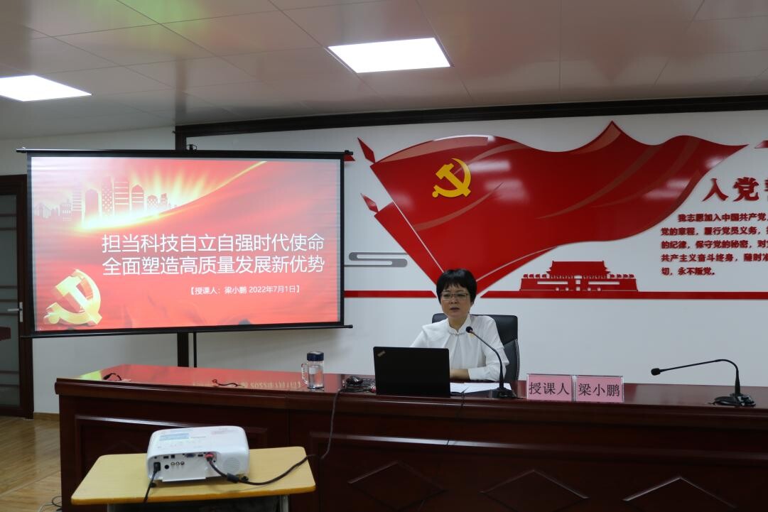 随后,梁小鹏以《担当科技自立自强时代使命全面塑造高质量发展新优势》为题,为支部全体党员上了一堂专题党课。党课对省第十三次党代会精神进行了全面系统宣讲和深入解读。提出要坚决落实好省委、市委关于科技创新工作的决策部署,担当科技时代使命,塑造高质量发展新优势。要坚定看齐、精准对标,在学深悟透中扛起科技使命。要聚焦中心、抓住重点,在服务大局中展现科技作为。要把握机遇、主动作为,在改革创新中提升科技效能。