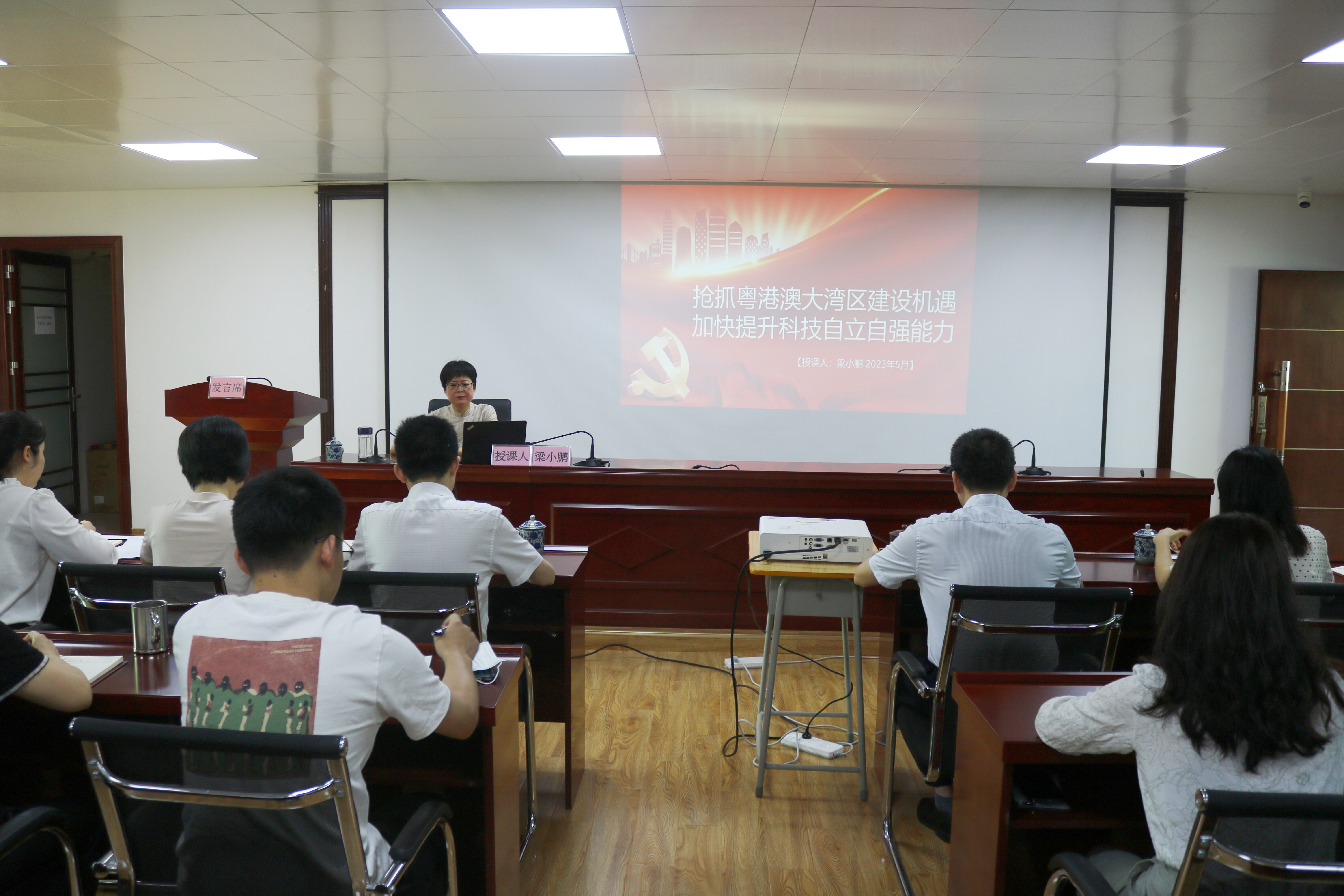 学习会上,局党组书记、局长、党支部书记梁小鹏同志以“抢抓粤港澳大湾区建设机遇加快提升科技自立自强能力”为主题,为局党支部全体党员讲授专题党课,与大家一同学习了习近平总书记视察广东重要讲话、重要指示精神,以及省委、市委学习贯彻会议精神,同时结合习近平总书记在粤港澳大湾区建设的重要论述精神,进一步从政治、全局、战略的高度深化对习近平总书记重要讲话、重要指示精神的理解把握。