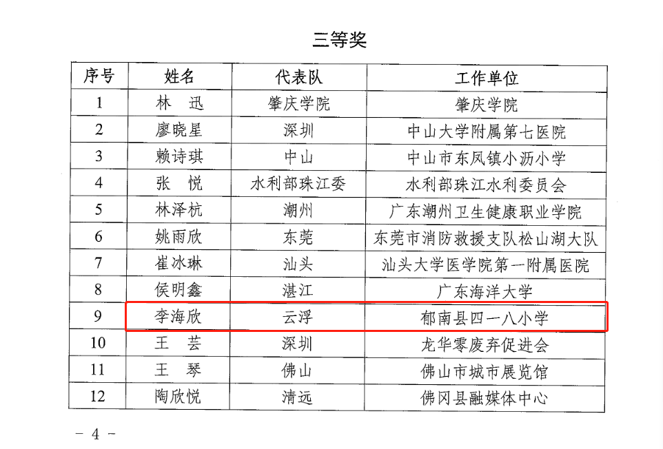 近日,广东省科技厅联合广东省教育厅、广东省科协公布了2023年广东省科普讲解大赛获奖名单,我市喜获奖项,其中郁南县四一八小学李海欣老师获成人组三等奖,5名选手获成人组优秀奖,3名选手获中小学生组优秀奖;云浮市科技局荣获“优秀组织奖”,连续两年获此奖项。