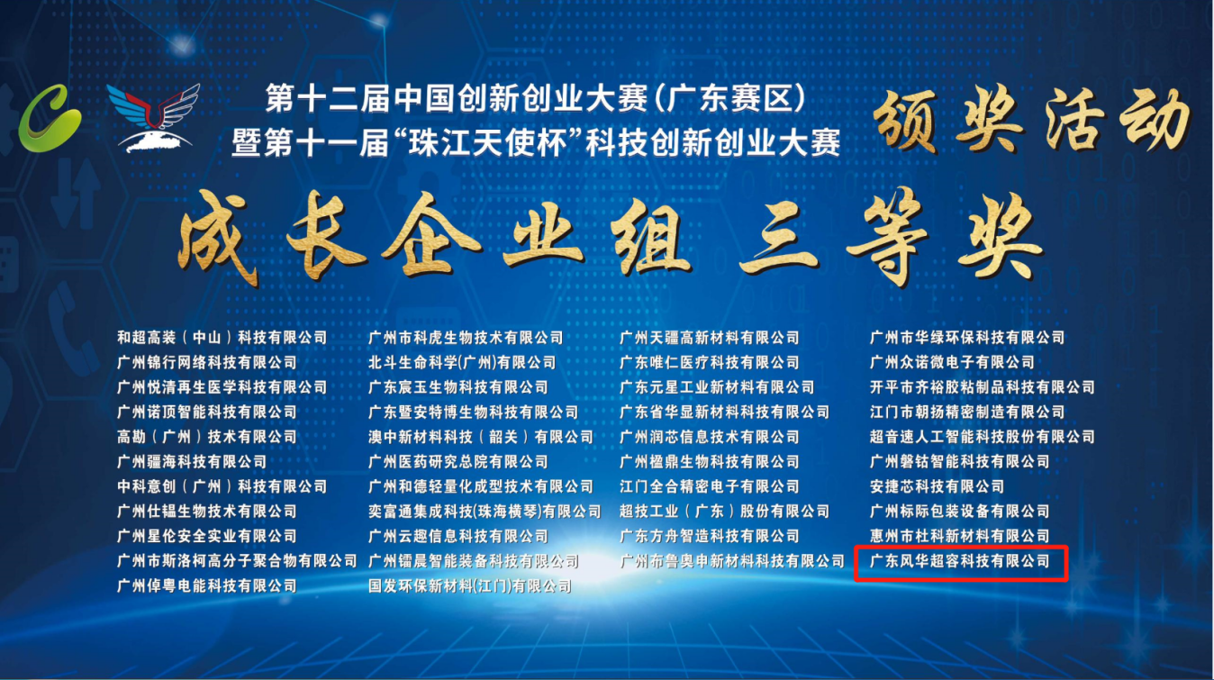 据了解,本届大赛共有4000多个项目报名参赛,经过初赛、地市选拔赛、省领域赛等环节的层层选拔,共遴选出93个高质量高成长的优质项目推荐入围全国赛、100个优质项目晋级省总决赛。广东风华超容科技有限公司勇敢追梦,从技术产品到商业模式,从行业市场到团队和财务,用创意非凡的实施方案、优秀精彩的舞台表现,在与全省各地市优秀企业的竞争中赢得了荣誉。