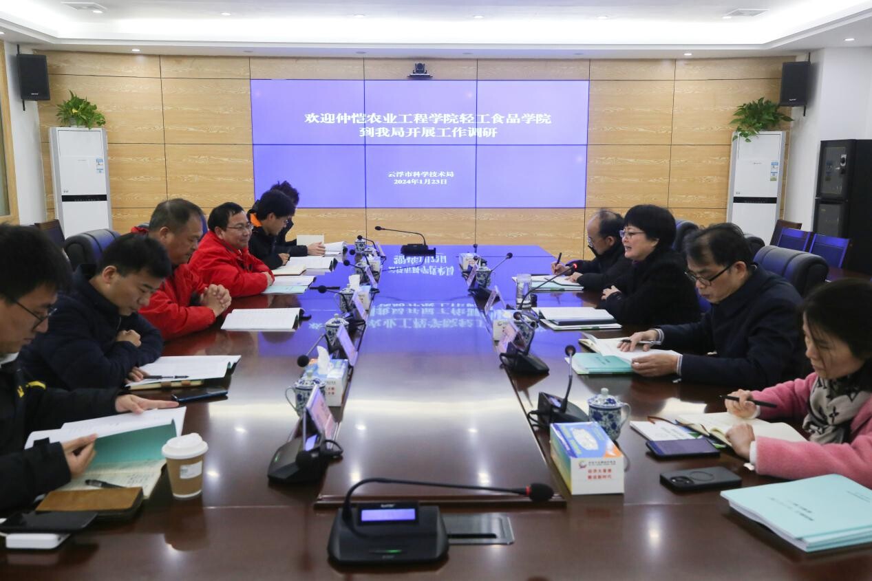 近日,仲恺农业工程学院轻工食品学院党委书记刘胜洪、院长曾晓房一行到云浮市科技局开展技术需求交流对接,了解云浮市农产品加工和食品制造等方面的技术创新需求,共同探讨科技助力“百千万工程”的工作举措,推动农业技术创新成果在云浮落地。市科技局党组书记、局长梁小鹏,分管领导、农社科有关负责人参加了座谈交流。