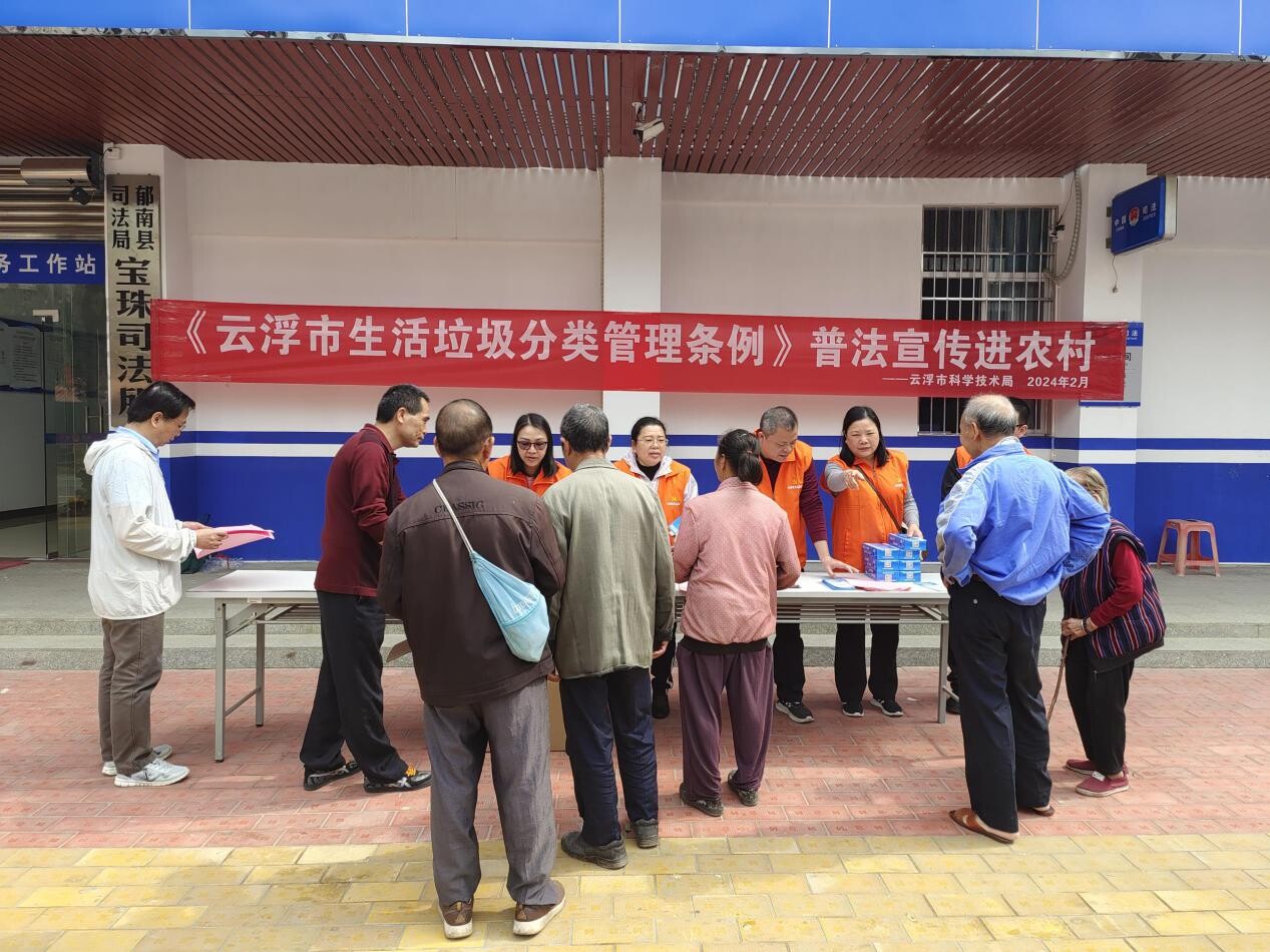 为进一步加大垃圾分类宣传力度,增强公众对生活垃圾分类减量的知晓度、认同度,提高群众对垃圾分类的认知水平,不断提升社会治理水平,2月19日,云浮市科学技术局组织党员志愿者到乡村振兴驻点帮扶的郁南县宝珠镇开展《云浮市生活垃圾管理条例》普法宣传进农村活动。