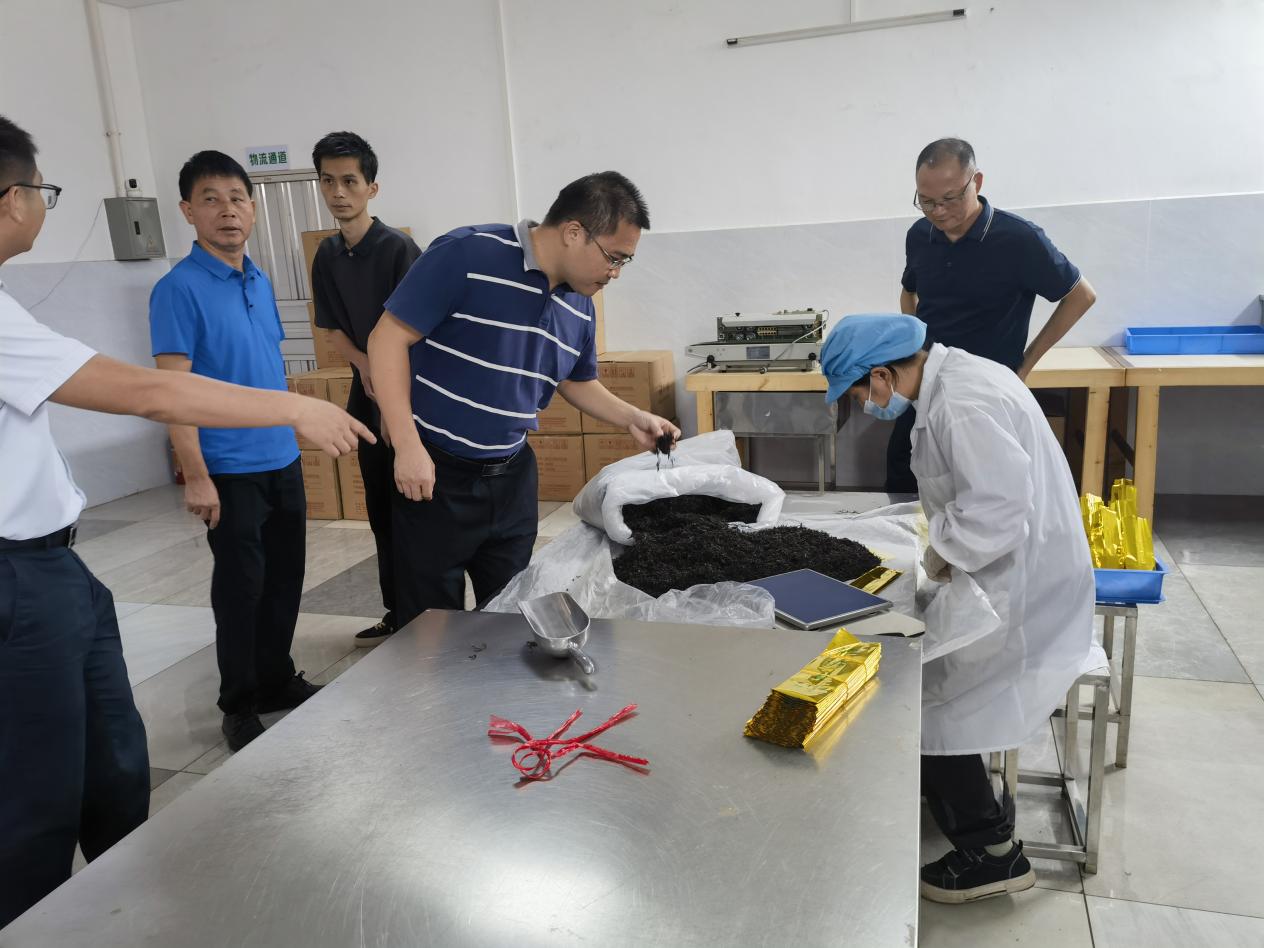 肖承宾一行先到广东龙圣茶业食品有限公司实地考察生态茶园、茶叶加工厂,详细了解企业近几年在茶树品种种植、茶叶生产加工、技术平台交流共建、科研成果转化运用成效等方面的工作情况,高度肯定了公司在茶叶科研技术推广运用,推动茶产业发展上取得的成效。并强调,茶产业是我市特色产业之一,要坚持绿色发展理念,强化科技支撑,发挥联农带农作用,为推动乡村产业振兴、助力“百千万工程”高质量发展贡献力量。