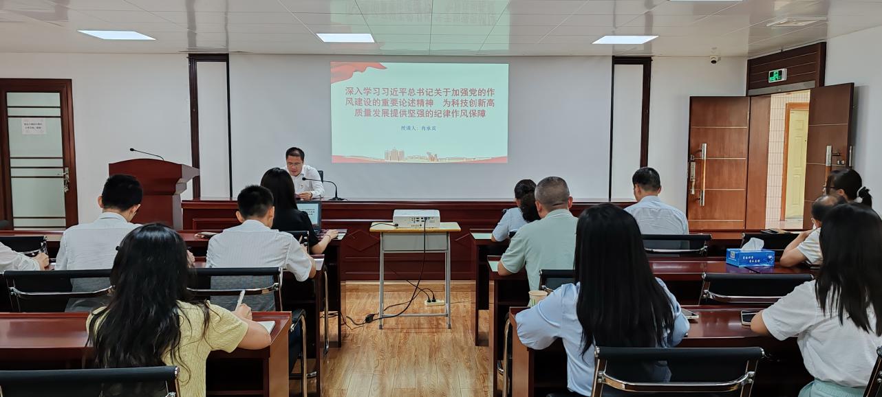 专题党课以学促干。近日,市科技局党组书记、局长、党支部书记肖承宾同志以《深入学习习近平总书记关于加强党的作风建设的重要论述精神 为科技创新高质量发展提供坚强的纪律作风保障》为题讲授专题党课。围绕加强党的作风建设的深刻内涵、坚持党性党风党纪一起抓、以高度的政治责任感推动作风建设走深走实三个方面进行深刻阐述。肖承宾同志强调,一要用习近平新时代中国特色社会主义思想凝心铸魂,修好“心学”;二要用党章党规党纪校正思想与行动,形成“自觉”;三要把纪律严明的光荣传统与真抓实干的精神状态结合起来,扛牢“担子”,为进一步全面深化改革、推进中国式现代化的广东实践云浮新篇章作出科技贡献。
