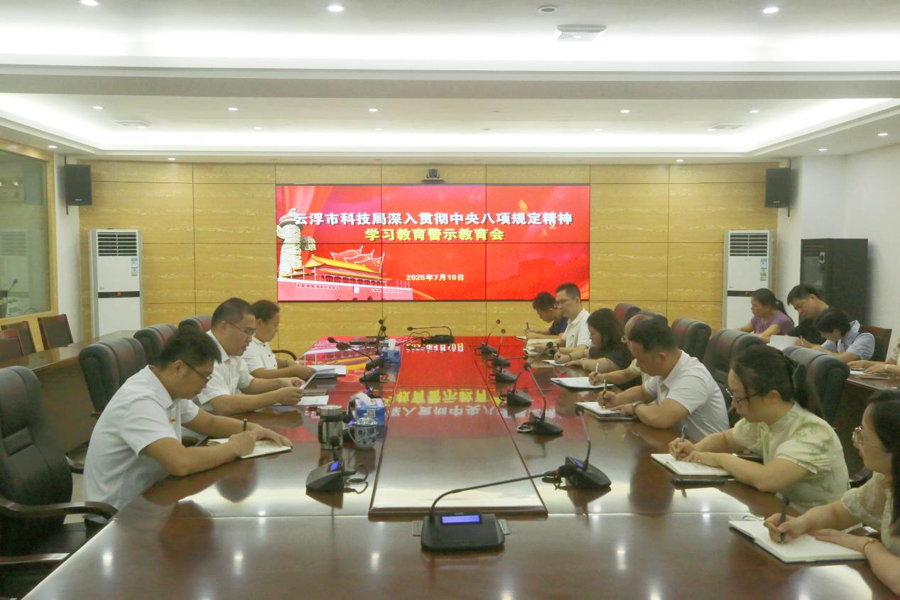会议强调,一要提高政治站位,深化思想认识。要深刻认识当前作风建设的必要性和紧迫性,清醒认识全面从严治党是一个长期而艰巨的过程,把严的基调、严的措施、严的氛围长期坚持下去,特别是要从反面典型案例中深刻汲取教训,以常抓不懈、久久为功的韧劲推动党的作风建设持续向好。二要坚持以案为鉴,做到警钟长鸣。从反面典型案例中深刻汲取教训,树牢纪律意识、规矩意识,真正把党规党纪内化为日用而不觉的言行准则,坚决克服麻痹思想和侥幸心理,带头抵制形式主义、违规吃喝等违反中央八项规定精神问题,坚守纪律红线和廉洁底线。三要强化责任担当,狠抓工作落实。要把学习教育的成果转化为干事创业的硬本领、遵规守纪的硬约束,认真履行岗位职责,积极担当作为,为进一步全面深化改革、推进中国式现代化的广东实践云浮新篇章作出科技贡献。