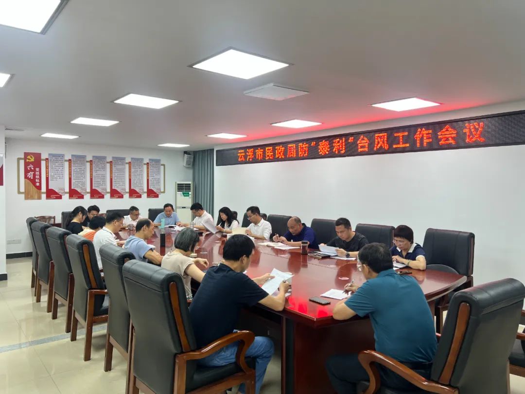 为深入贯彻落实习近平总书记对防汛救灾工作的重要指示精神及近日省、市有关防汛救灾工作会议精神。2023年7月16日晚上,市民政局召开防“泰利”台风工作会议,局党组书记、局长李德荣主持会议并讲话。会议要求,全市各地民政部门要按照“不死人、少损失”为目标,切实落实民政工作职责,以排查、整治、防御为主,对福利院、养老院等民政服务机构全面排查,按照属地管理、分级负责的原则,通过上门探访、电话问候等方式,对空巢老人、留守儿童、残疾人、双百社工要深入到户、逐户上门走访,排查不利天气可能对困难群众居住安全带来的风险隐患,特别是及时转移处于危险区有关人员,确保人民群众生命财产安全。确保民政服务机构物资储备到位,及时开展防风防汛培训演练,要强化监督指导和入户排查,加强防台风防汛知识上门宣传等工作。7月17日下午,市民政局召开党组(扩大)会议,再次传达学习省、市最新防台风工作会议精神及市委主要领导到云城区、云安区调研防台风工作时的讲话精神,分析研判民政领域防台风工作,对做好全市民政领域防台风工作进行再动员再部署。会议强调,全市民政系统要以“时时放心不下”的责任感,打醒十二分精神,全力筑牢民政领域台风防御屏障,全力确保民政服务对象的生命财产安全。