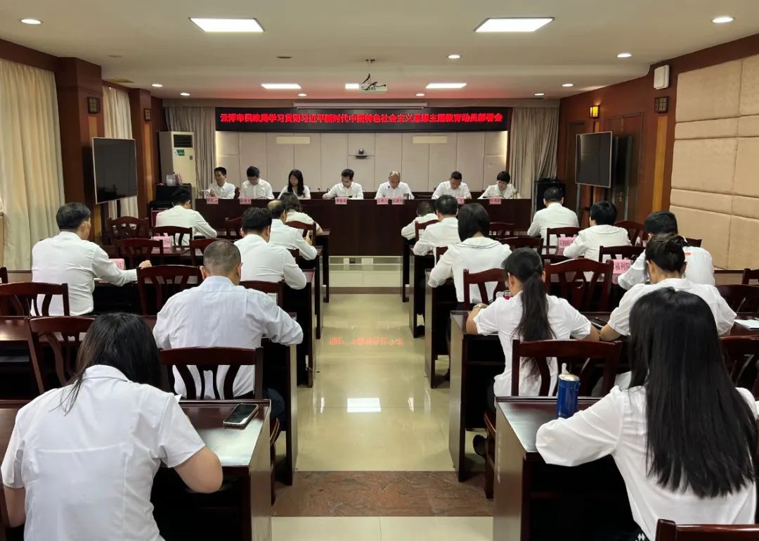 为深入学习贯彻习近平总书记关于主题教育系列重要讲话和重要指示精神,认真落实中央、全省主题教育第一批总结暨第二批部署会议精神和全市主题教育动员部署会的有关安排,对市民政局开展主题教育进行动员部署,2023年9月23日上午,云浮市民政局召开学习贯彻习近平新时代中国特色社会主义思想主题教育动员部署会。市民政局党组书记、局长李德荣出席会议并讲话,局党组副书记、副局长吴国全主持会议并传达学习中央、省、市关于主题教育工作的有关会议精神。市委主题教育联络三组第6小组王晓兰、区志铭两名同志列席会议;局机关全体在编人员和下属事业单位班子成员以及全体党员、市社会组织党委委员参加会议。