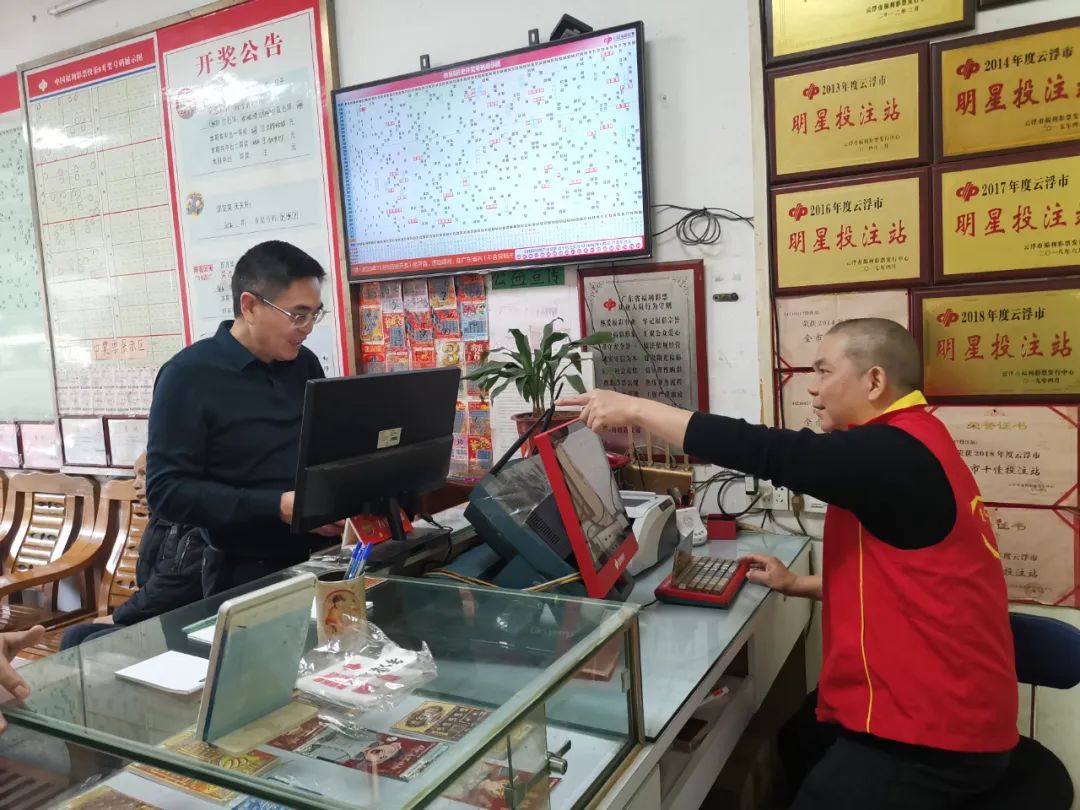 11月23日上午,曾小龙主任到新兴县深入一线销售站点开展实地调研,详细了解站点销售情况和经营现状,听取了业主和销售员的建议和意见,鼓励他们要保持积极向上的工作态度,借助双色球派奖活动期间的“东风”,认真做好福彩销售工作,为福彩事业发展作贡献。