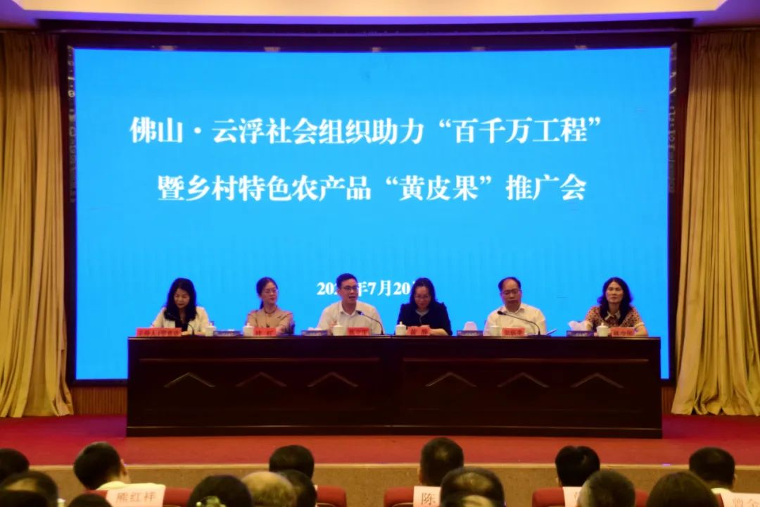 为深入学习贯彻习近平总书记关于民政工作的重要论述,充分发挥社会组织桥梁纽带作用,全面助力“百千万工程”,推动区域协调发展,7月20日,云浮市民政局联合佛山市民政局在郁南县举行佛山·云浮社会组织助力“百千万工程”暨乡村特色农产品“黄皮果”推广会。省民政厅社会组织管理局、佛山市民政局、云浮市民政局、郁南县委县政府有关负责同志及佛山、云浮两地社会组织代表共100多人参加了会议。