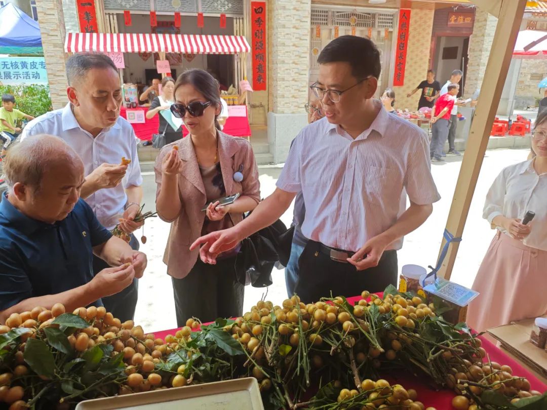 会议召开前,全体人员参观了黄皮街、黄皮母树,在工作人员的介绍下,对郁南特产--无核黄皮的特点、产业以及发展历史有了深入了解,并现场品尝无核黄皮、鸡心黄皮等特色黄皮以及各种黄皮制品,对云浮郁南黄皮产业发展表示赞许。