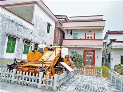 近日,记者采访发现,新兴县太平镇悦塘村将一台农用收割机放在村民屋前进行展示。据了解,原来悦塘村是全县第一批使用机械收割机收割作物的村庄,用于展示的是早已被淘汰的收割机,它不仅能起到美化村容村貌的作用,还能弘扬不忘初心,艰苦奋斗的文化精神。