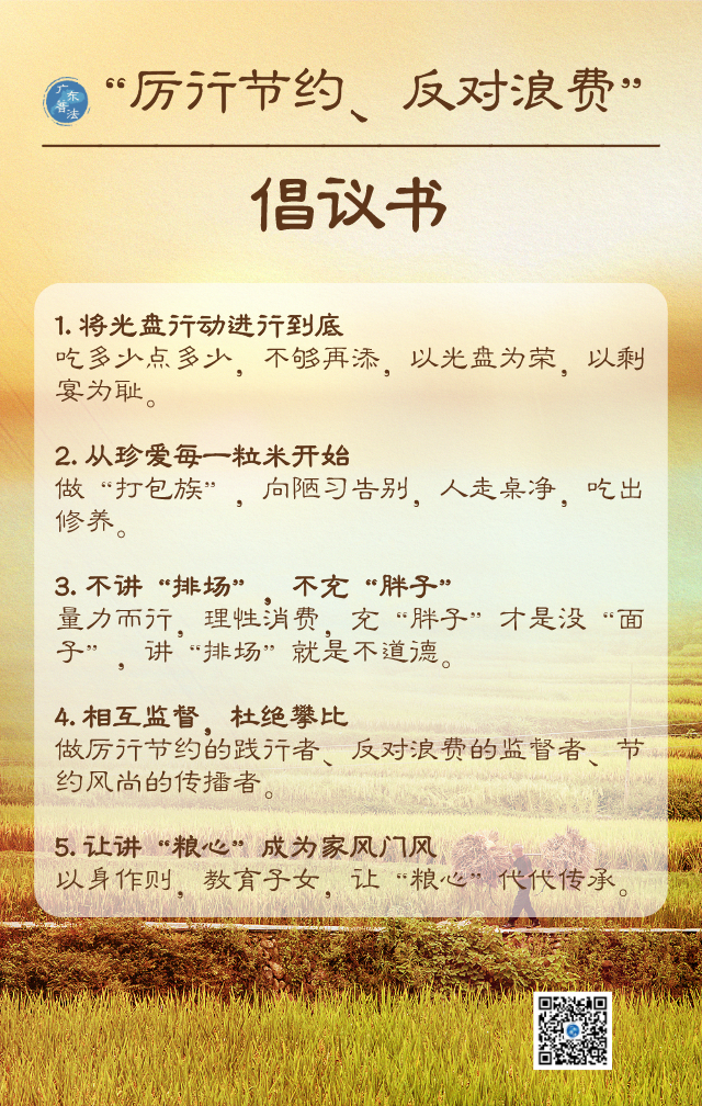 “一粥一饭,当思来之不易;一丝一缕,恒念物力维艰。”厉行节约是个人品德的体现,反对浪费是社会文明的缩影,粮食安全事关国泰民安。