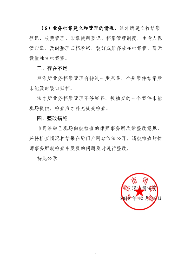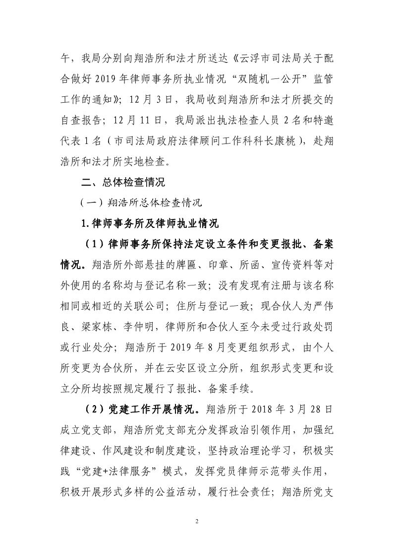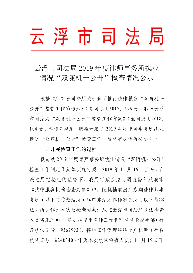 云浮市司法局2019年度律师事务所执业情况“双随机、一公开”检查情况公示