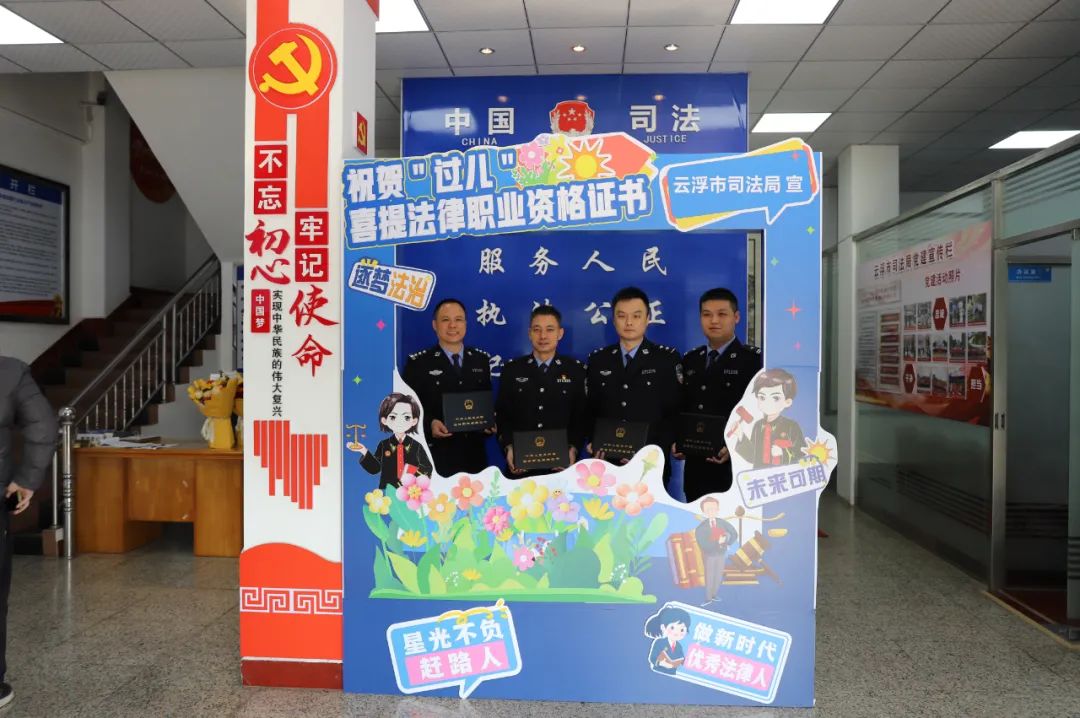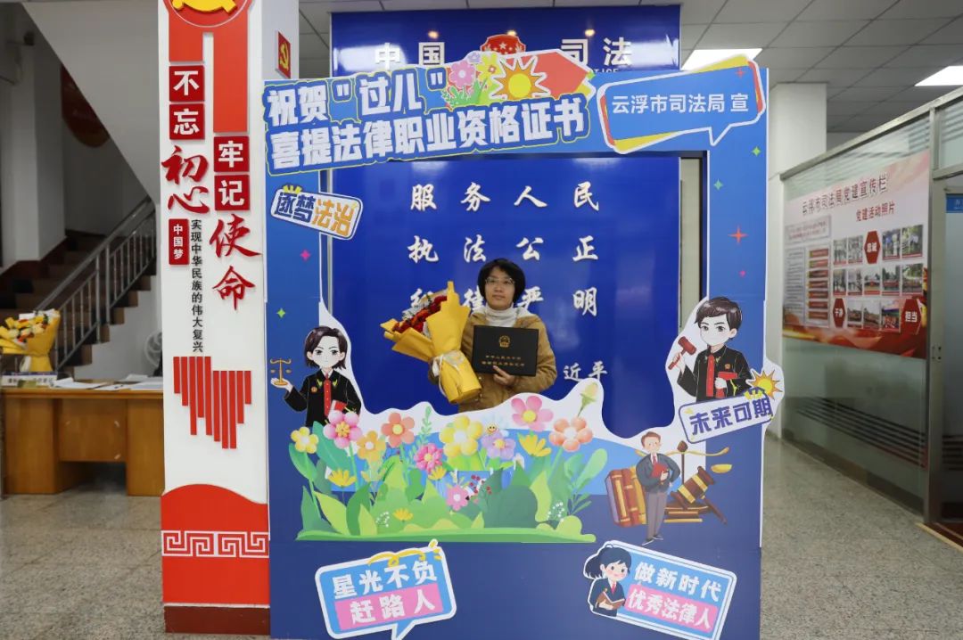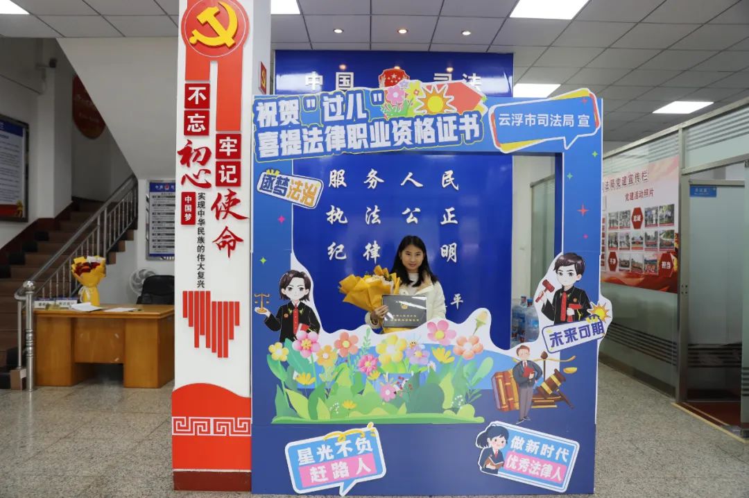 3月18日至20日,云浮市司法局专门在一楼大厅精心准备了拍照打卡主题墙和鲜花,供通过2024年度法考的人员现场领证时拍照留念,为法治人才加油鼓劲。“过儿”们拍照留念ing。