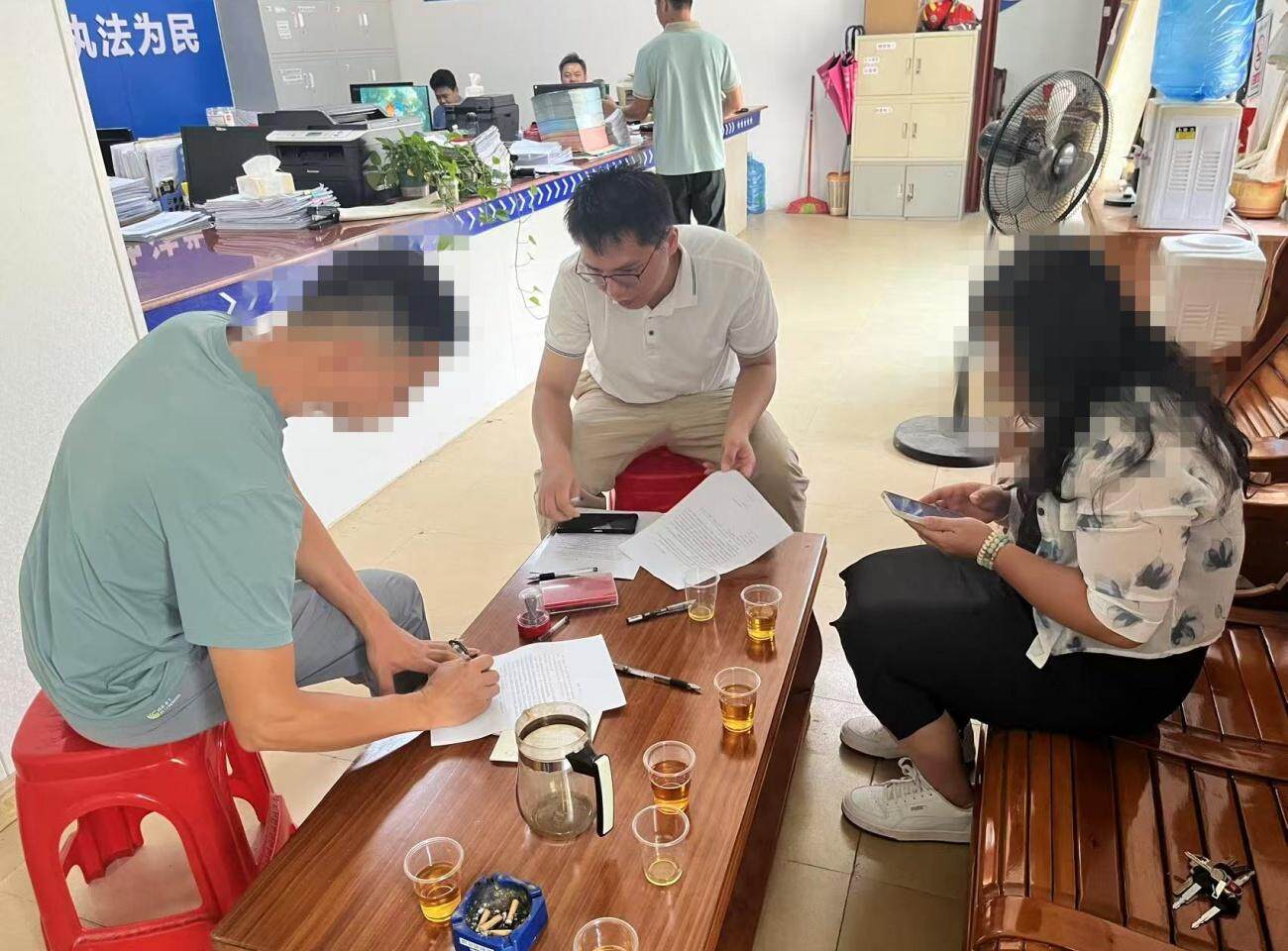 司法所工作人员在开展调解工作