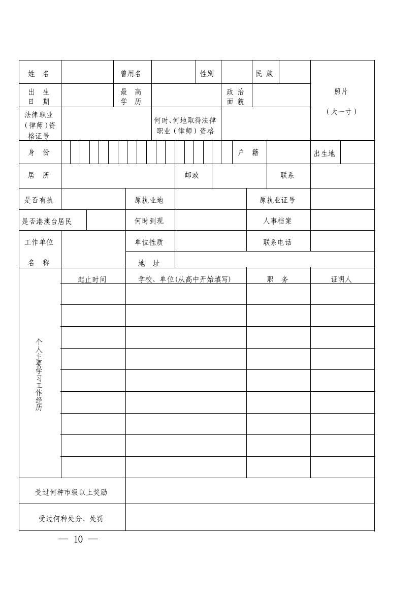 (一)《公职律师证书补换发申请表》(附表3);