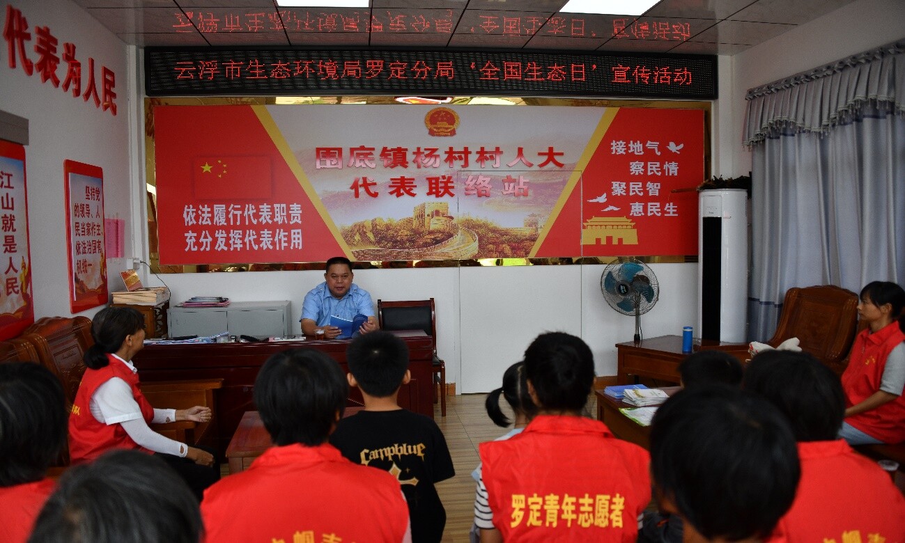 为深化习近平生态文明思想的大众化传播,做好首届全国生态日的宣传活动。2023年8月15日,云浮市生态环境局罗定分局在罗定市围底镇杨村村委举行了以“绿水青山就是金山银山“为主题的全国生态日宣传活动。