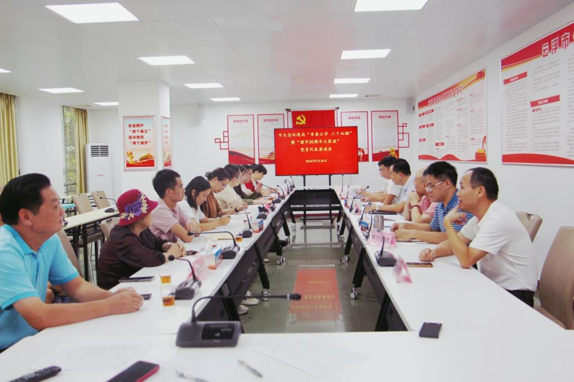 市生态环境局直属机关党委开展“青春云浮 三十而励”暨“建市30周年大家谈”党员代表座谈会。座谈会围绕云浮建市30年来在经济、社会、文化、生活等方面,特别是生态环境保护方面取得的成效和变化,结合自身工作、生活实际,逐一进行交流发言,谈感悟、提建议、献对策。党员代表纷纷表示,将以建市30周年为新的起点,牢牢把握“高质量党建引领保障高质量发展”主线,在推进机关党建与生态环境保护工作深度融合中把准方向、找准思路,聚力激发“三十而立”青春云浮的昂扬斗志,着力破解我市生态环境保护工作难题,以生态环境高水平保护推动我市经济社会高质量发展。