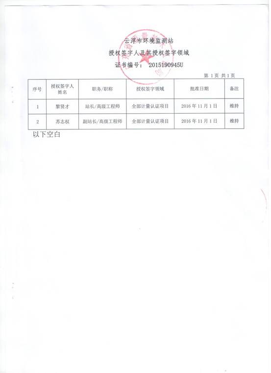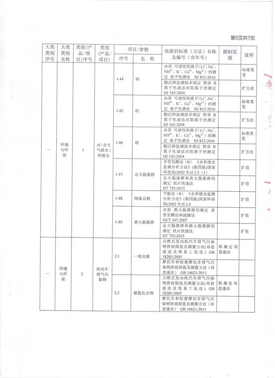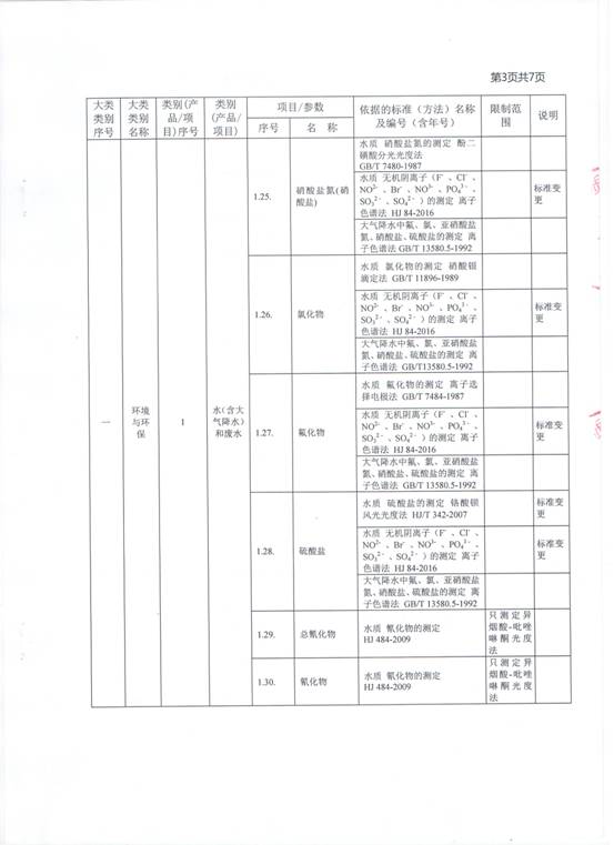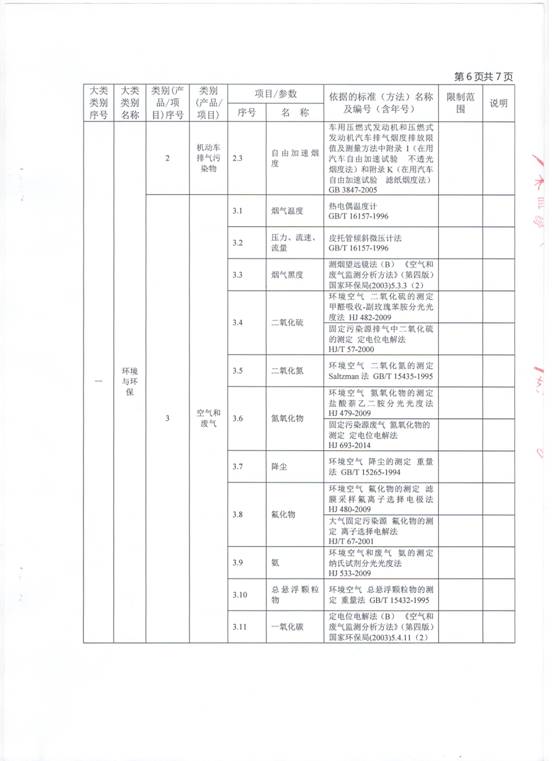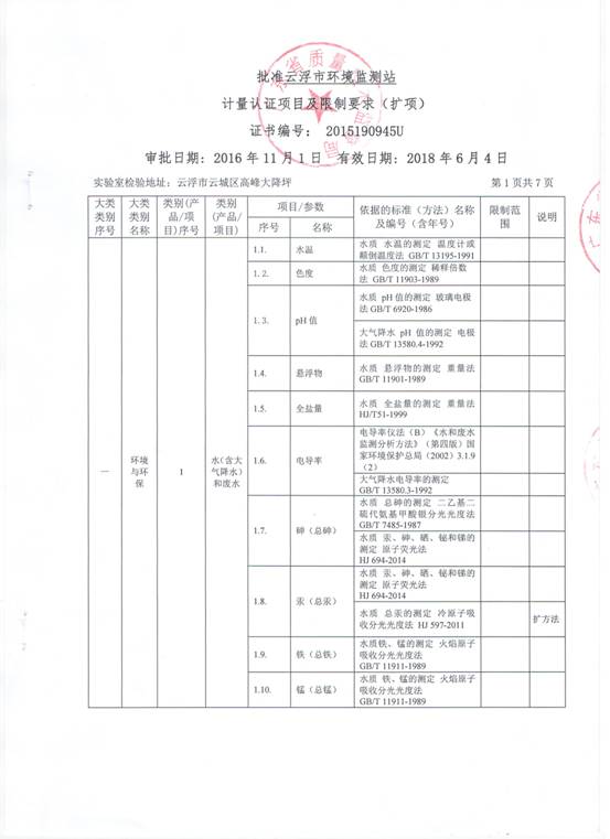 现将云浮市环境监测站计量认证项目及限制要求公布如下:
