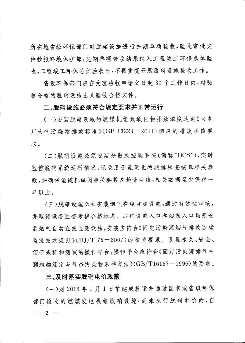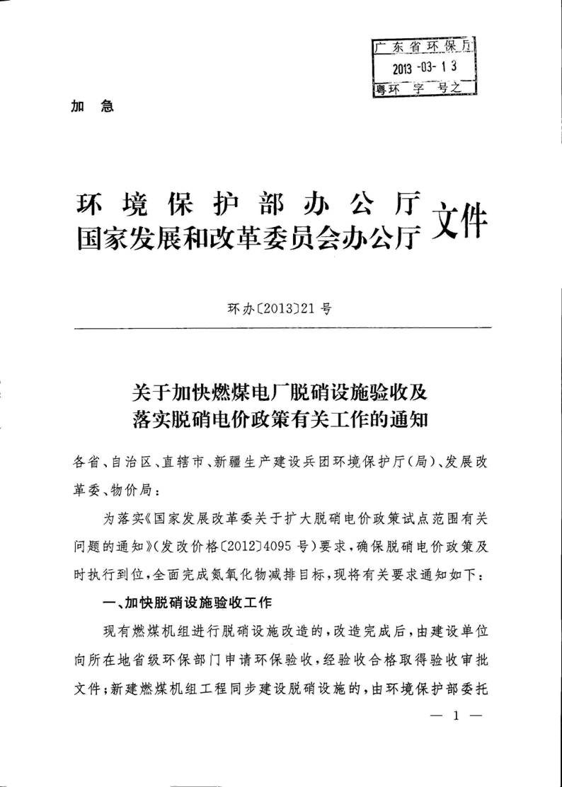 关于加快燃煤电厂脱硝设施验收及落实脱硝电价政策有关工作的通知(环办[2013]21号)