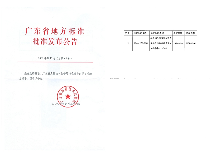 在用点燃式发动机轻型汽车排气污染物排放限值(简易瞬态工况法)(DB44/ 632-2009)-批准发布公告.jpg