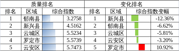 2024年1-7月云浮市各县(市、区)水环境质量排名情况公布