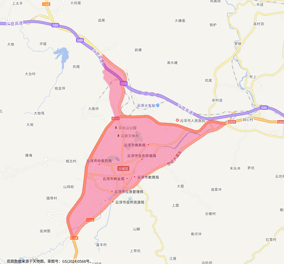 云浮市云城区以世纪大道、环市路、新旧云六公路形成的闭合区域内(含上述道路)道路(详见示意图),全天24小时禁止黑烟车及国三排放标准柴油货车通行。