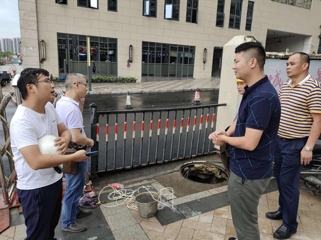 现场检查恒大城污水管网整改情况