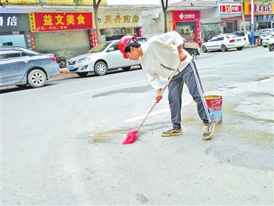近日,记者在市区建设北路一工地外,见到一名施工员正在仔细清洗路面上的泥尘。施工方表示,保持路面干净、不扬尘是所有施工单位责无旁贷的工作,今后将进一步落实施工扬尘防治措施,为打赢蓝天碧水保卫战出份力。