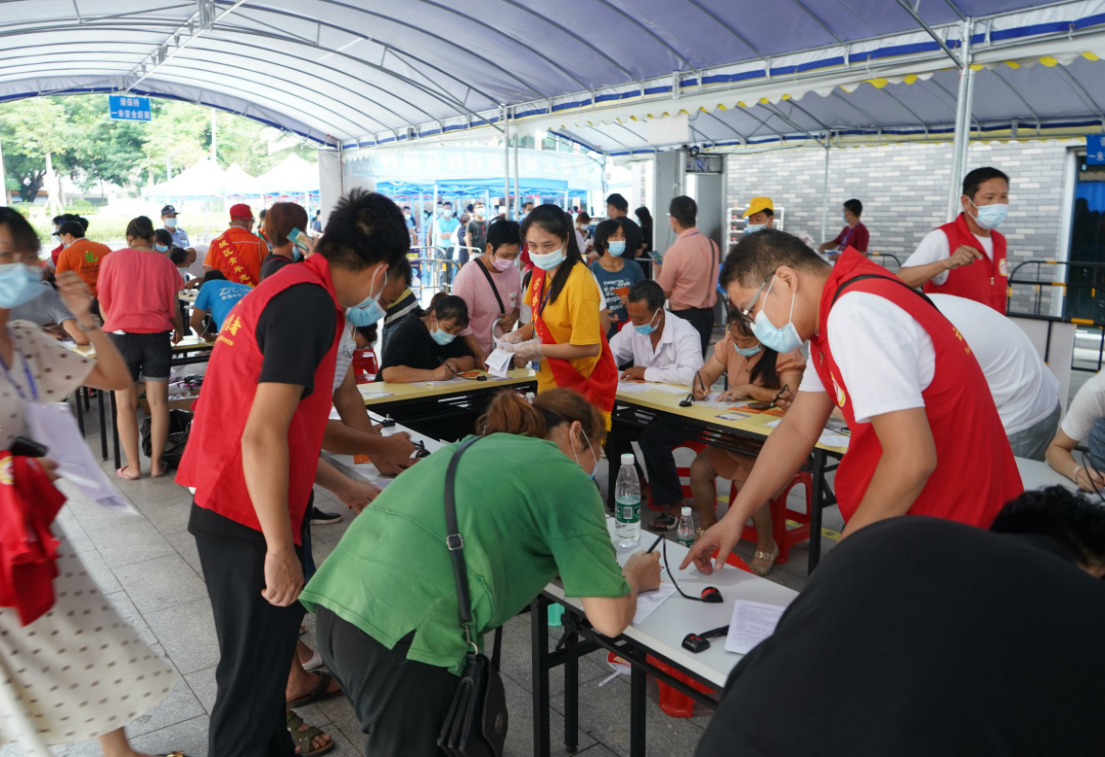 云城区退役军人先锋志愿服务队积极响应号召,助力疫苗接种工作。在市英东体育馆新冠疫苗接种现场,退役军人志愿者积极协助医护人员做好入口引导、信息登记、咨询解答等工作,指引完成接种的居民群众到留观区休息,并协助安保人员维持好场外群众排队秩序。