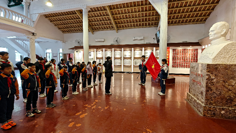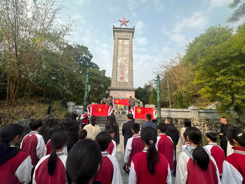 活动中,师生们在烈士纪念碑前整齐列队向纪念碑敬献花圈,全体默哀三分钟、行三鞠躬礼,以庄重仪式表达对英烈的深切哀思与崇高敬意。随后党员教师、学生代表分别在纪念碑前重温入党誓词、重温入团入队宣誓仪式,参加学生“以青春之力践行报国之志”为誓,道出新时代青年的担当。祭扫仪式后,师生们在讲解员引领下参观烈士展陈综合馆,通过体验多媒体,参观学习历史照片与文物、家书等重温先烈事迹,深刻感受英烈“不畏牺牲、英勇斗争”的精神内核。