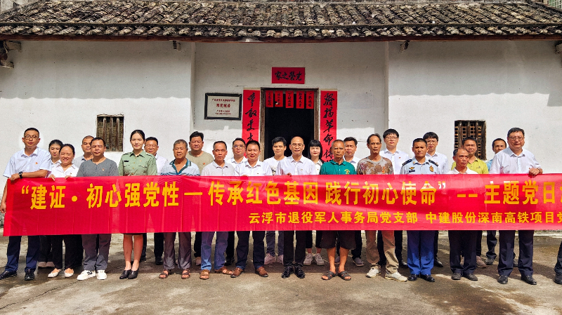 为推动深入贯彻中央八项规定精神学习教育走深走实,筑牢党员干部思想根基,在“七一”建党节来临之际,云浮市退役军人事务局党支部联合中建股份深南高铁项目党支部前往邓发故居,开展“传承红色基因·践行初心使命”主题党日活动,感悟红色历史,传承革命精神,以实际行动诠释新时代党员担当。