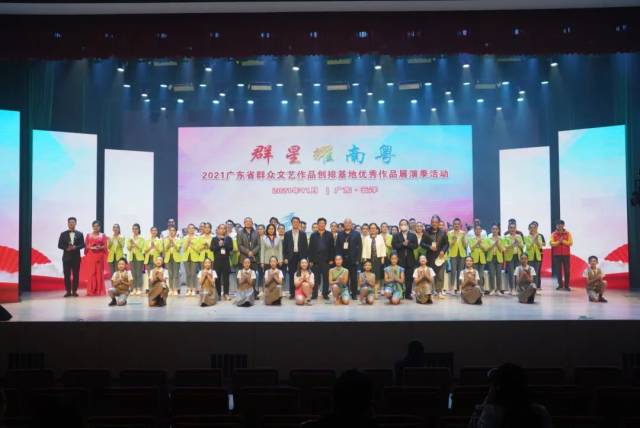 “群星耀南粤”——2021广东省群众文艺作品创排基地优秀作品展演季活动由广东省文化和旅游厅主办,云浮市文化广电旅游体育局、广东省文化馆、罗定市文化广电旅游体育局、新兴县文化广电旅游体育局承办,云浮市文化馆、罗定市文化馆、新兴县文化馆执行承办,从25日至28日,汇集全省群众文艺作品创排基地近两年创作的30个优秀音乐、舞蹈、戏剧、曲艺作品,分别在云浮市新兴县举办2场惠民演出,罗定市举办1场惠民演出和1场交流座谈会,共有来自全省15个广东省群众文艺作品创排基地和云浮市的300多名演职人员参加。省内资深音乐、舞蹈、戏剧、曲艺专家,省文化和旅游厅特聘2019-2021年度“广东省群文剧作家”“广东省群文作曲家”“广东省群文编舞家”、全省文化馆负责人及文艺创作骨干将全程参与展演观摩交流活动。