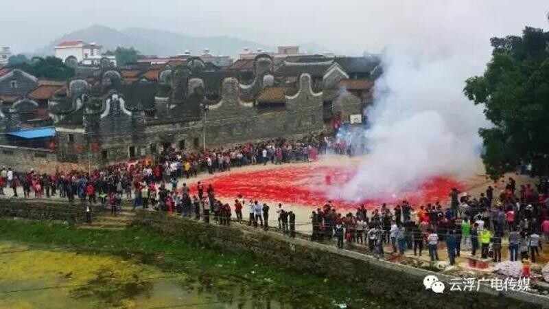 云城区腰古镇水东村宗祠旁的地堂,隆重举行“烧炮”、“抢炮”活动。