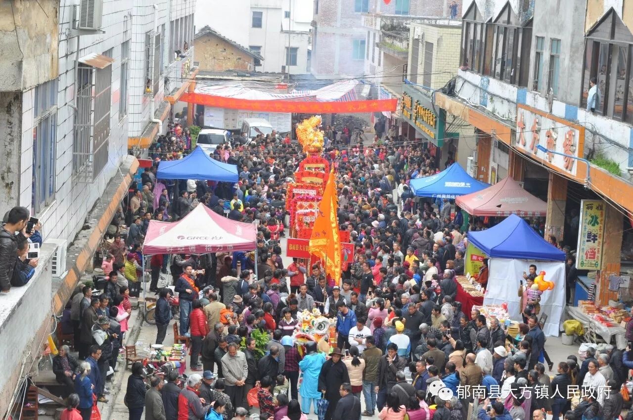民间艺术大巡游由大方镇龙抬头旅游文化传播协会组织的醒狮、舞龙、吹笛、地色(罗伞遮太子、状元才)、地色(唐三状取西经、仙女伞花)等巡游汇演。