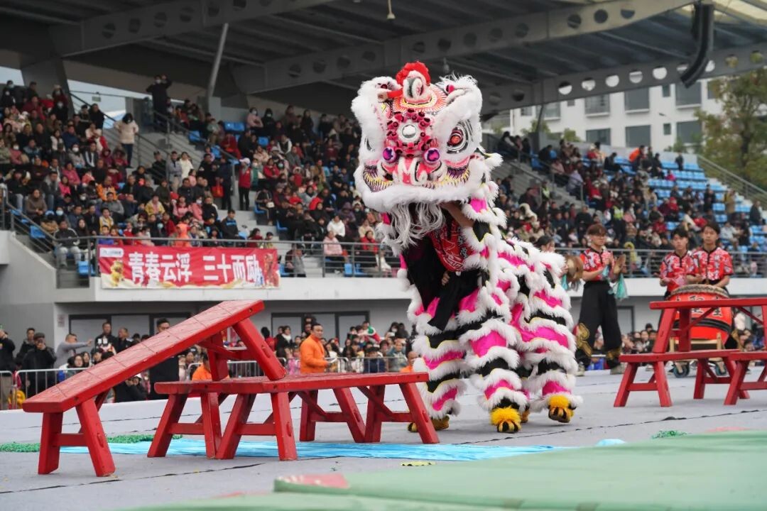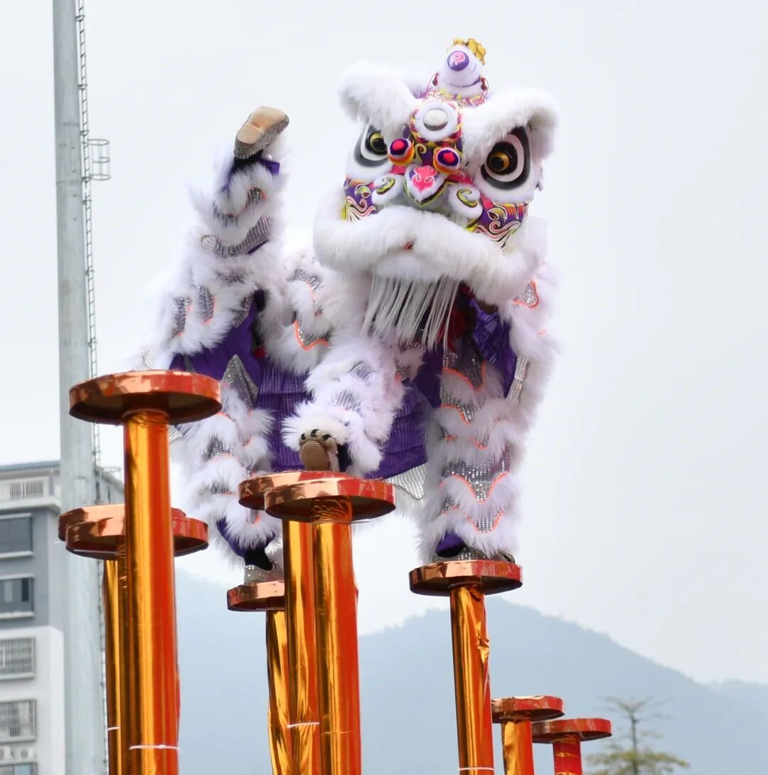 活动分为传统南狮、高桩自选两个项目进行。在传统南狮项目中,随着铿锵有力的锣鼓声,“雄狮”左右腾跃,前进、闪退、眨眼、扑咬……活灵活现的表情动作吸引了大家的注意力,热闹的氛围迅速蔓延,带动全场欢腾;在高桩自选项目中,南狮飞身上桩、上肩坐头、桩上飞跃、来回穿梭、钳腰饮水、悬挂采青……一系列高难度表演动作轮番上阵,突显雄狮的刚健勇猛、威严灵动,让人眼花缭乱、拍手称绝。